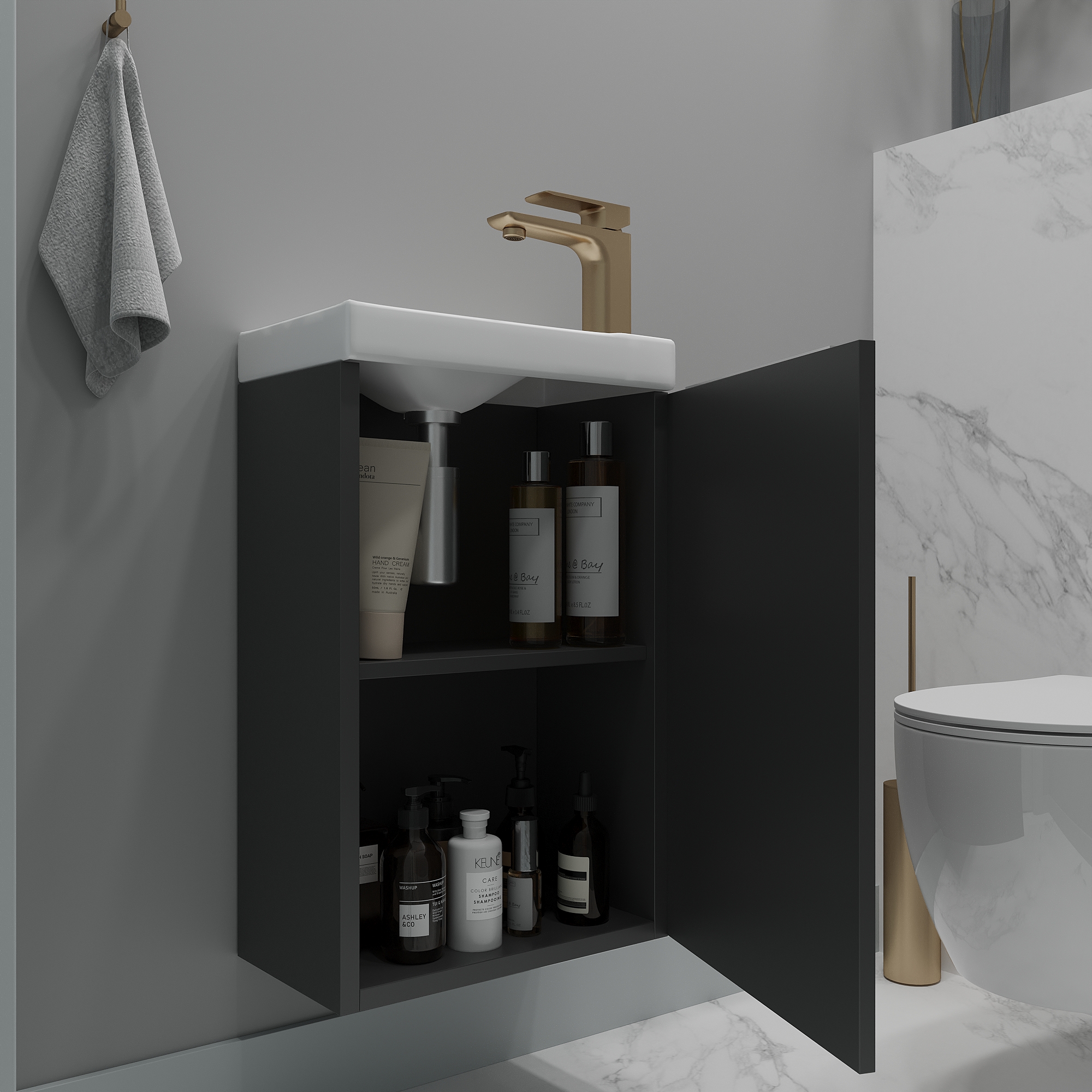 Подвесная конструкция тумбы очень удобна, ведь благодаря этому остается достаточно пространства над полом, что существенно облегчает процесс уборки. Вместительные полки позволяют спрятать все необходимые средства гигиены и банные принадлежности. Благодаря своей компактности и вместительности, тумба станет прекрасным дополнением в ванную комнату, позволив сэкономить место и визуально освежив внешний вид комнаты.