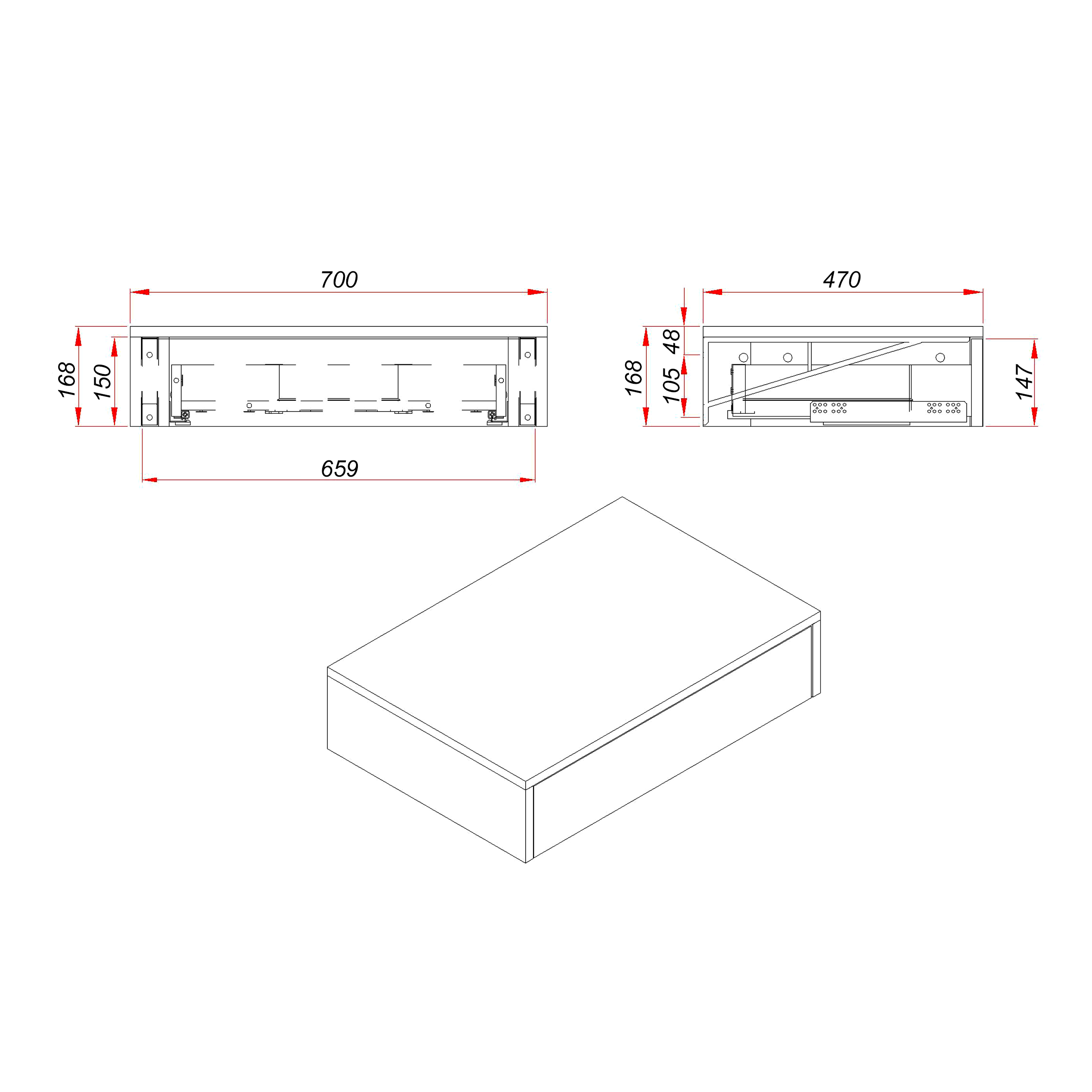 Тумба надежно крепится к стене с помощью прочных металлических кронштейнов, что обеспечивает долговечность и устойчивость конструкции.