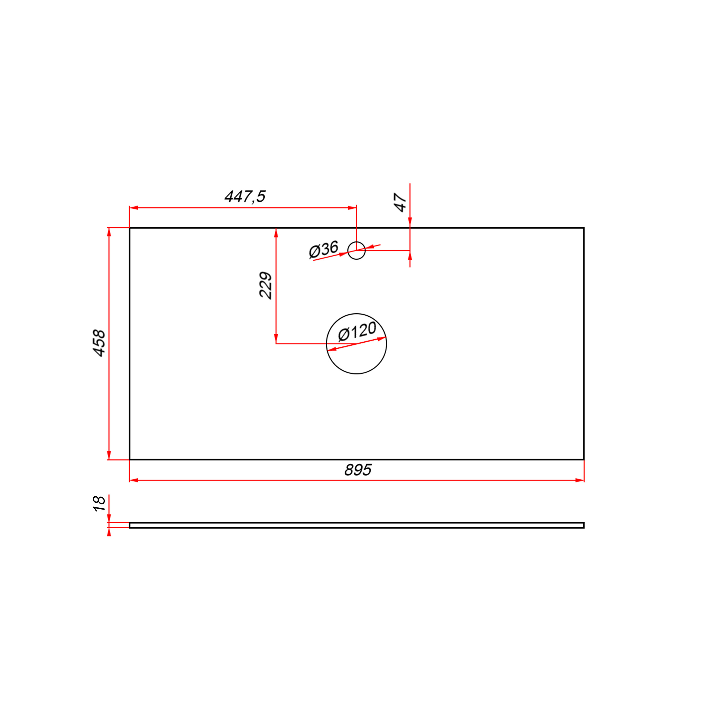 Столешница из влагостойкой фанеры 18 мм T895C2 Белая, 2 выреза, 895х458 мм