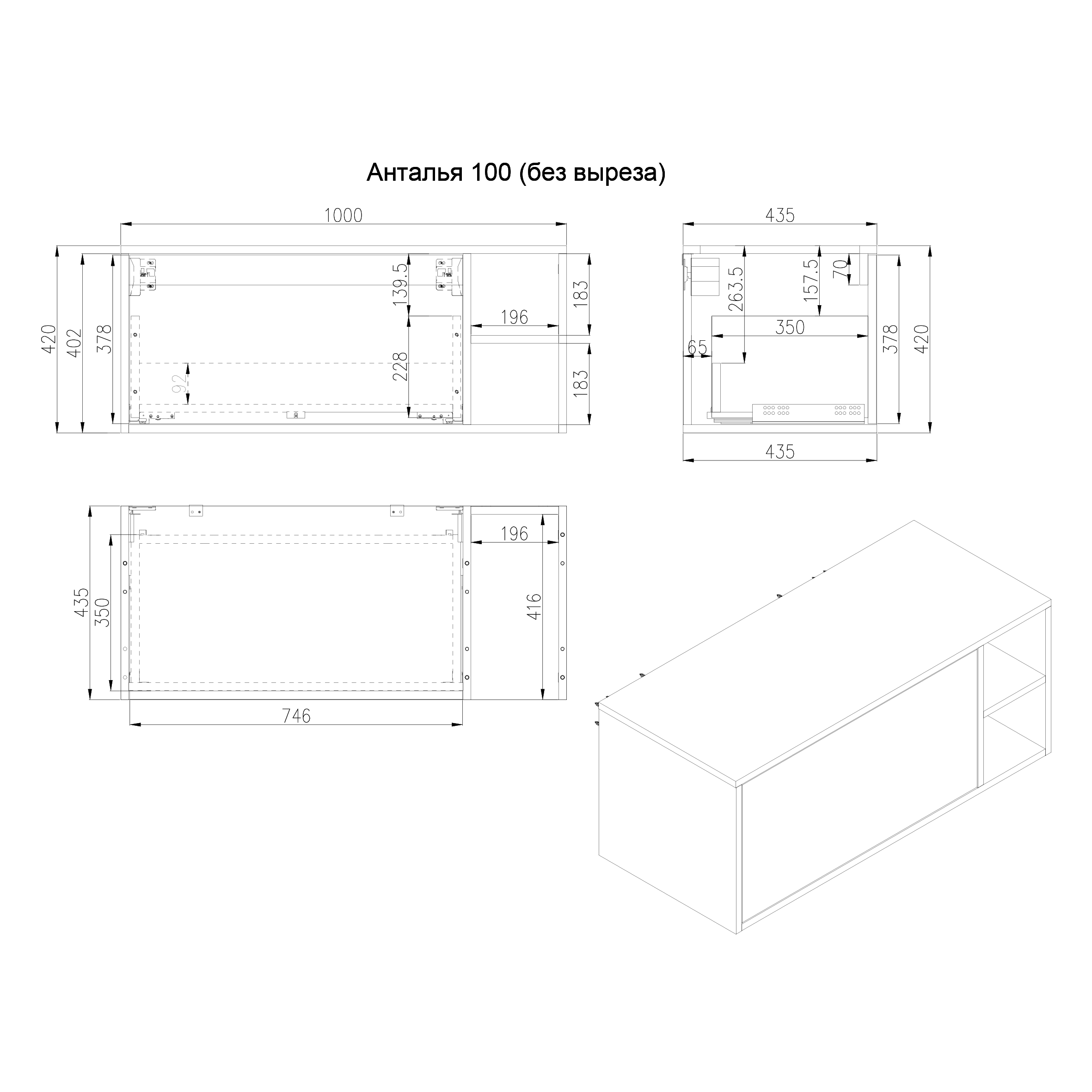 Тумба под раковину Дион-Анталья A100LOWC0, Дуб Веллингтон 100 / столешница ЛДСП Дуб Веллингтон (без вырезов)