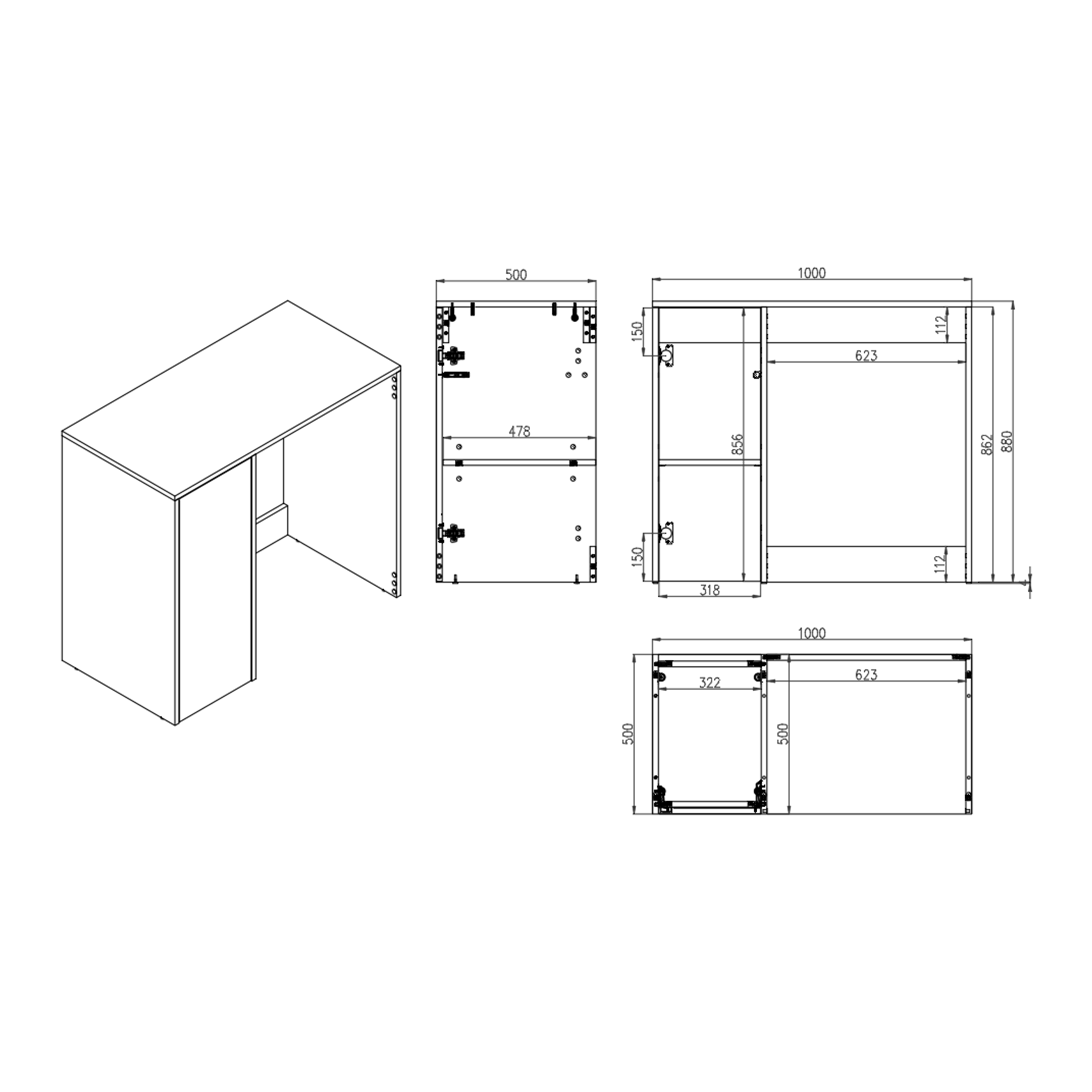 Тумба Стамбул S100LWP0LWPWMD, Премиум 100 (без вырезов, с дверью, универс)